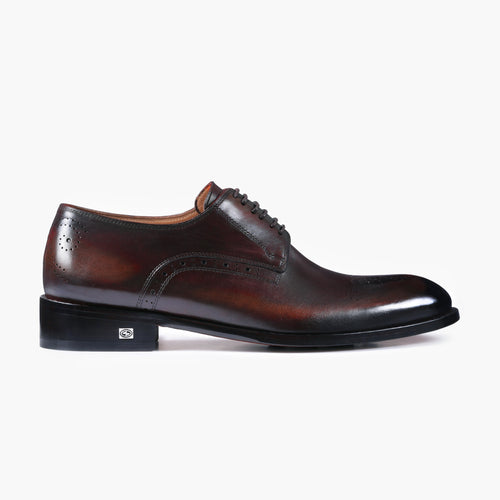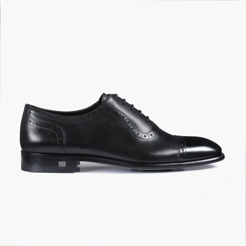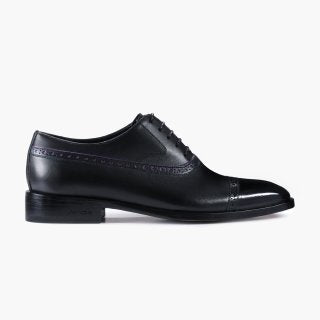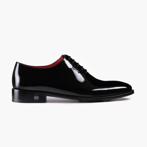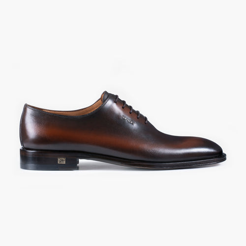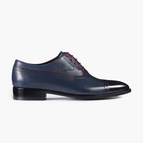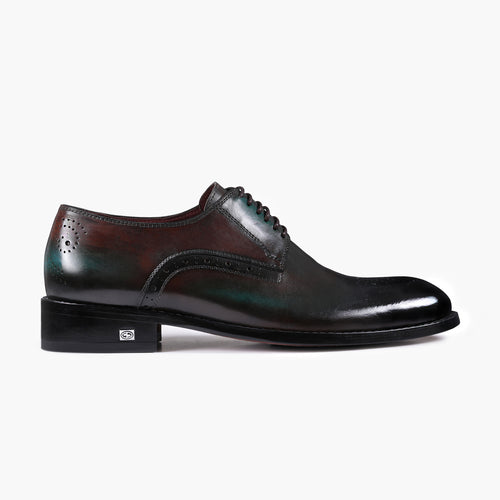 Տղամարդկանց էքսկլյուզիվ կոշիկներ՝ երկու շքեղ կաշիների համադրությամբ. հորթի փափուկ, նուրբ կաշվի, և երկարակյաց կորդովանի, որով պատված են կոշիկի ծայրերը։ Սև կոշիկներն ուրվագծված են մանուշակագույն քուղակապերով և գծերով, ունեն դեկորատիվ նախշեր։